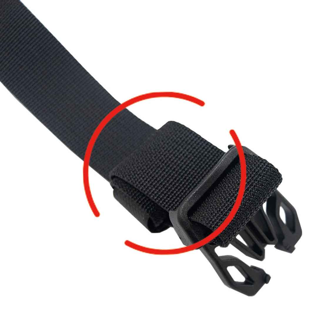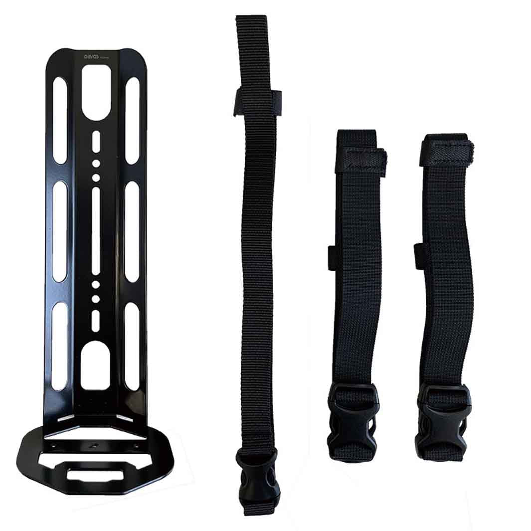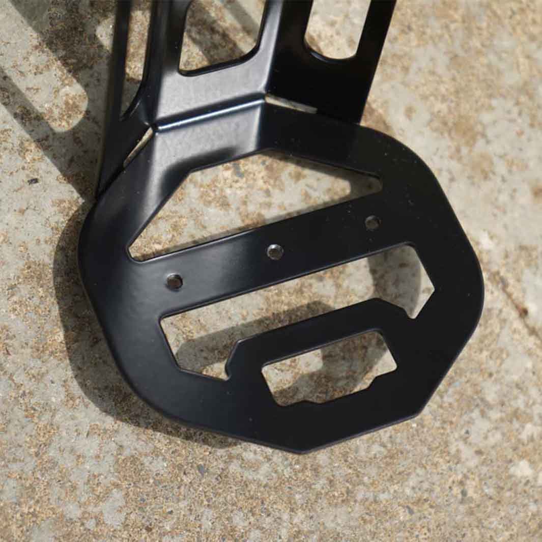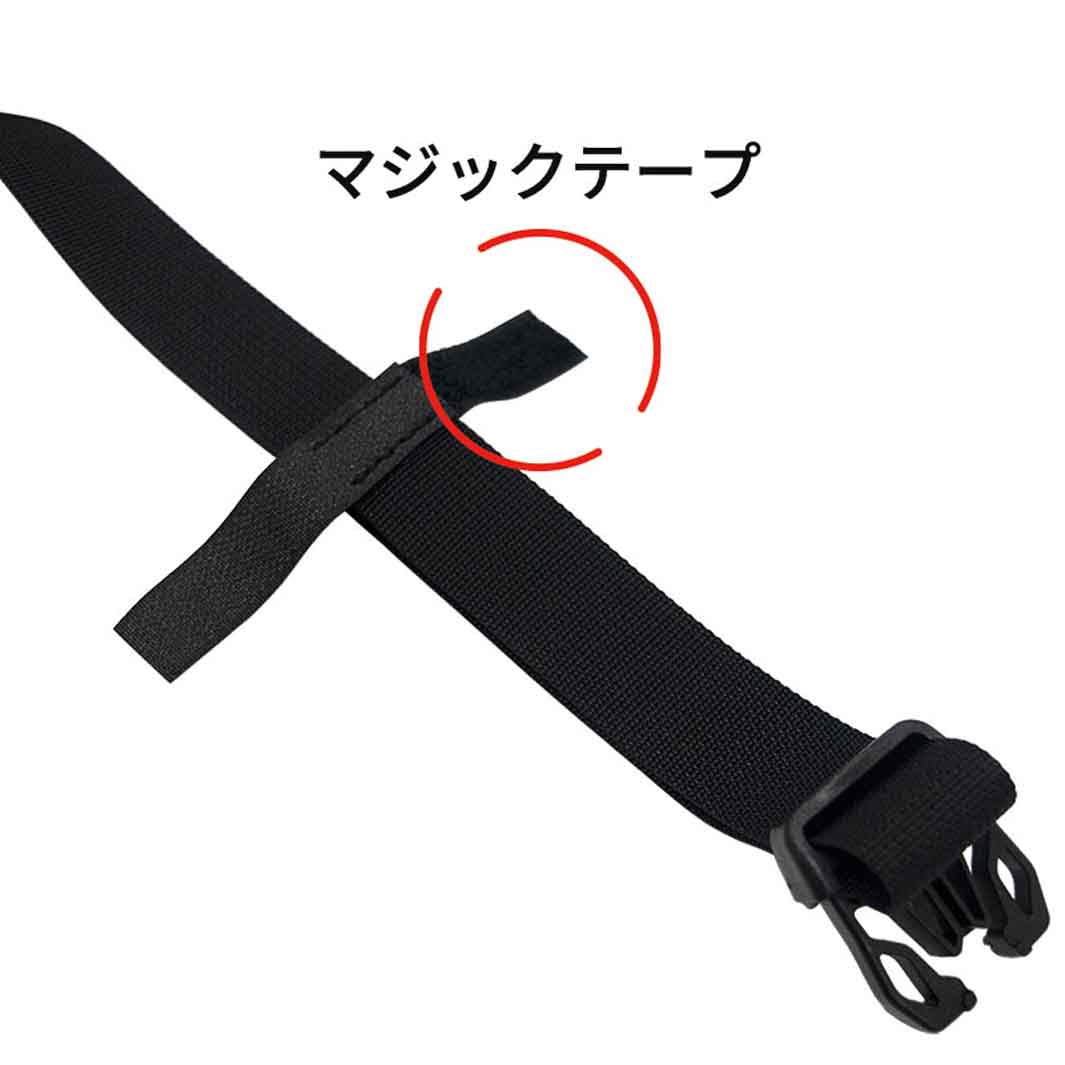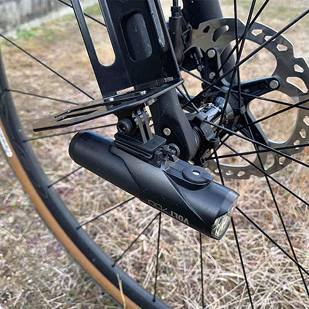 付属の横ベルトでベストな位置にしっかりと固定でき、オフロードライドでの荷物の縦揺れによるズレを解消できるよう、縦ベルトも付属。ケージの底部には25mmピッチのM4ネジ穴3個があり、マウントブラケットの取り付けが可能な為、ライトやアクションカメラの設置もできます。