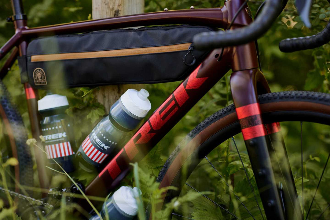 サイクルボトルを2本フレームにセットし、一本は頭から浴びたり転んだ時の傷口を洗ったりする際に重宝する真水を、もう一本はブドウ糖とナトリウムを含むハイポトニック飲料を用意しましょう。