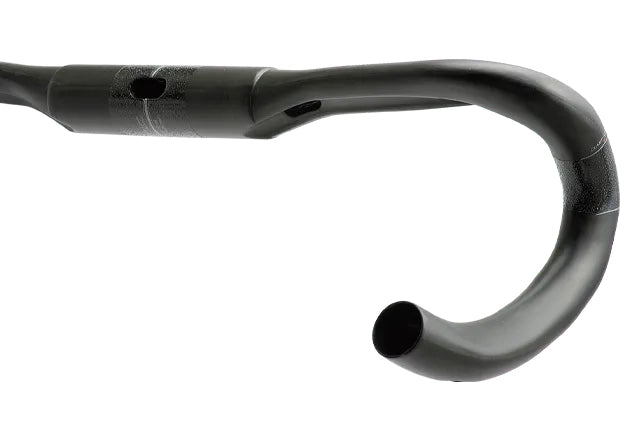 フィットゾーンの設定で操作性を高め、ドロップ部分の断面形状の外側斜め45°を最大3mm削ることで、ドロップポジションでの掌部分により高いグリップ感を得られるように工夫。リラックス効果を発揮するようにドロップ部分はエンド方向に10mmのハの字を切るフレア形状。