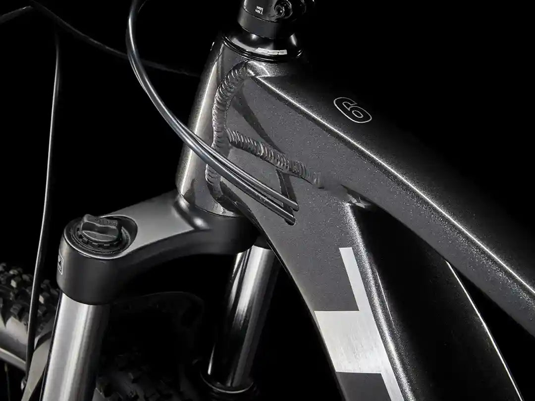 Marlin+6のXSサイズのフレームは、カーブしたトップチューブと低いスタンドオーバーハイトを採用、小柄なライダーも乗り降りしやすい。