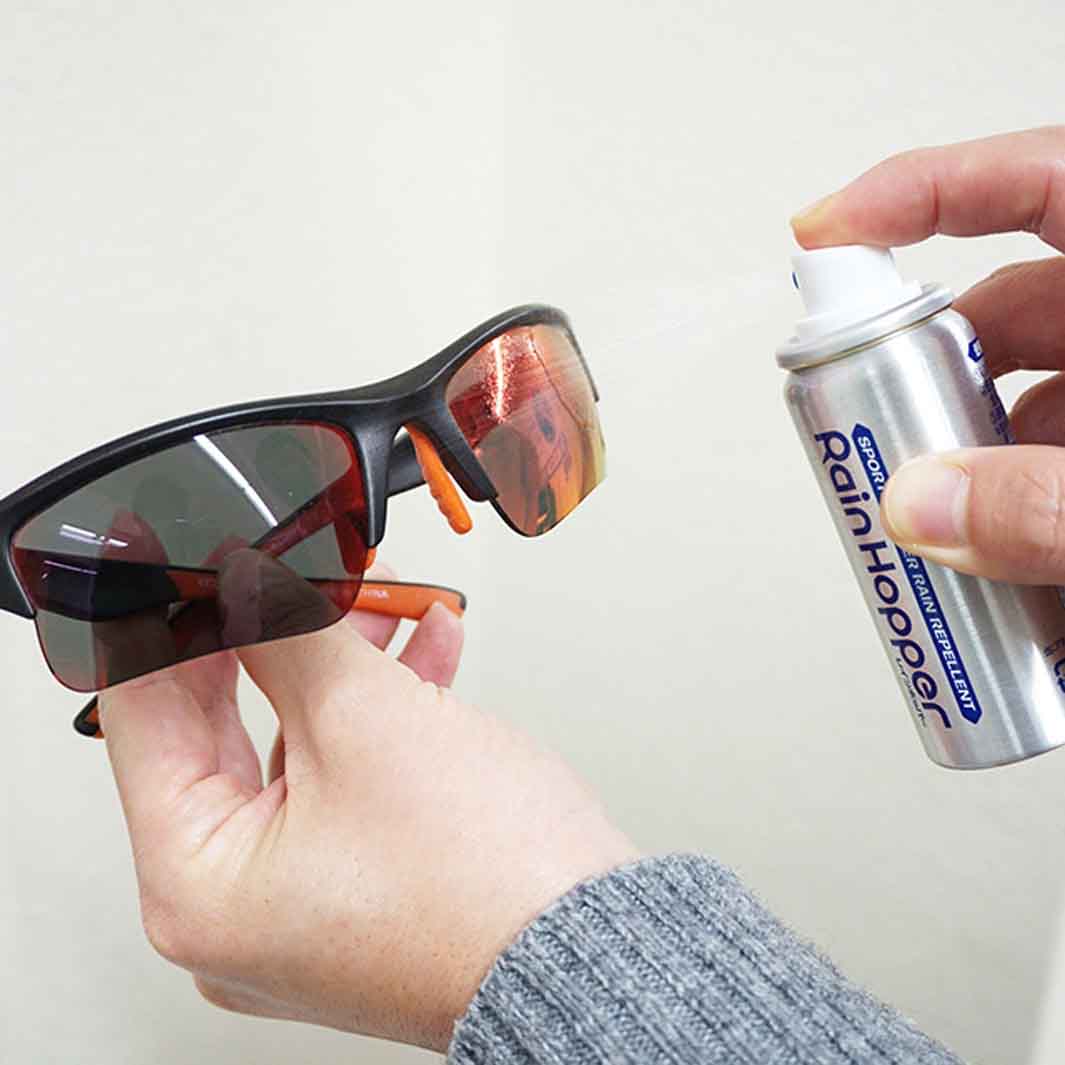 レンズにスプレーして乾燥させるだけで超撥水被膜を形成するスポーツアイウェア用の超撥水スプレー。