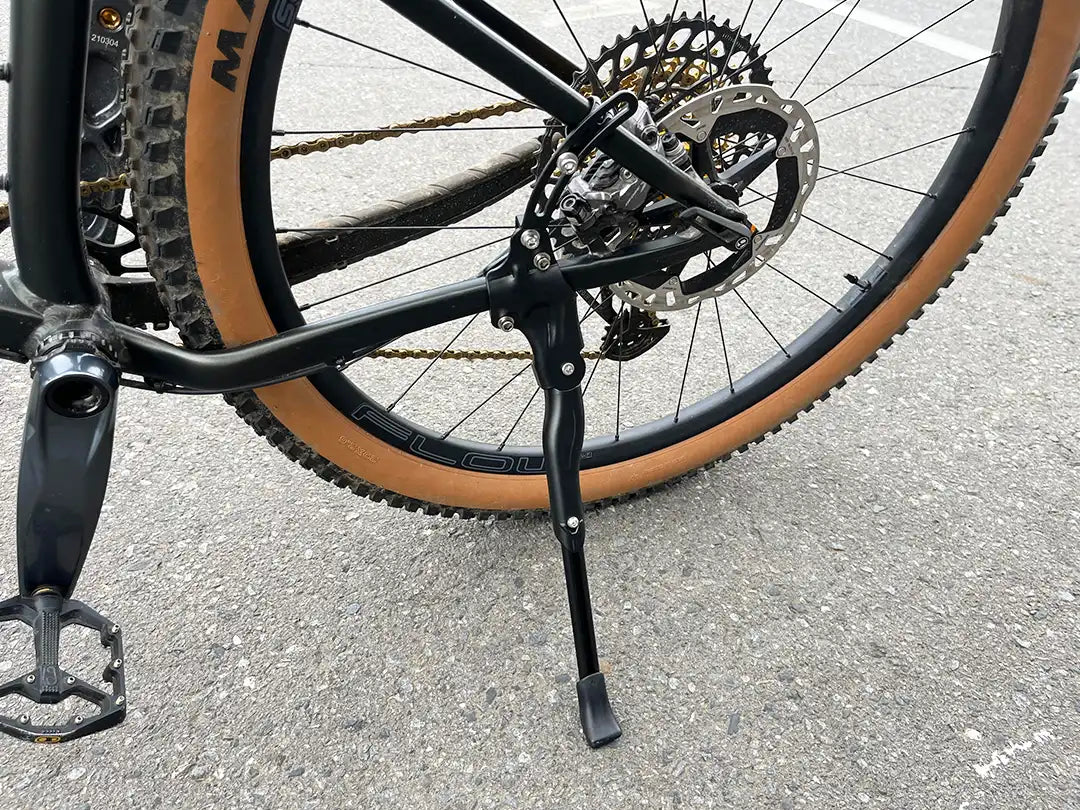 ディスクブレーキ付の自転車にも対応する26 〜 29 inch 用サイドスタンド。 シートステーとチェーンステーの角度と距離に合わせて取り替えられるエクステンションステーが3種類付属します。