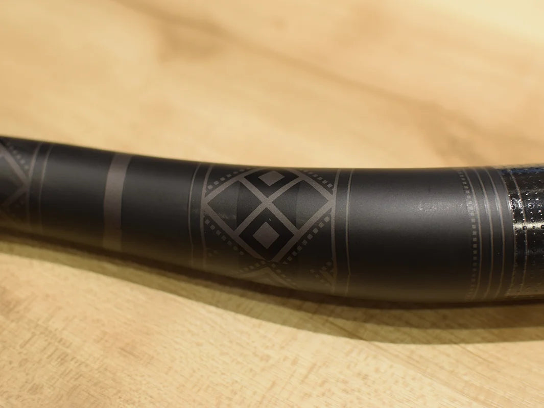 台湾の山岳地帯を拠点とする原住民 「布農族(BUNUN)」 の伝統衣装をモチーフにした美しいグラフィックが目を引く、マウンテンバイク用カーボンハンドルバー。