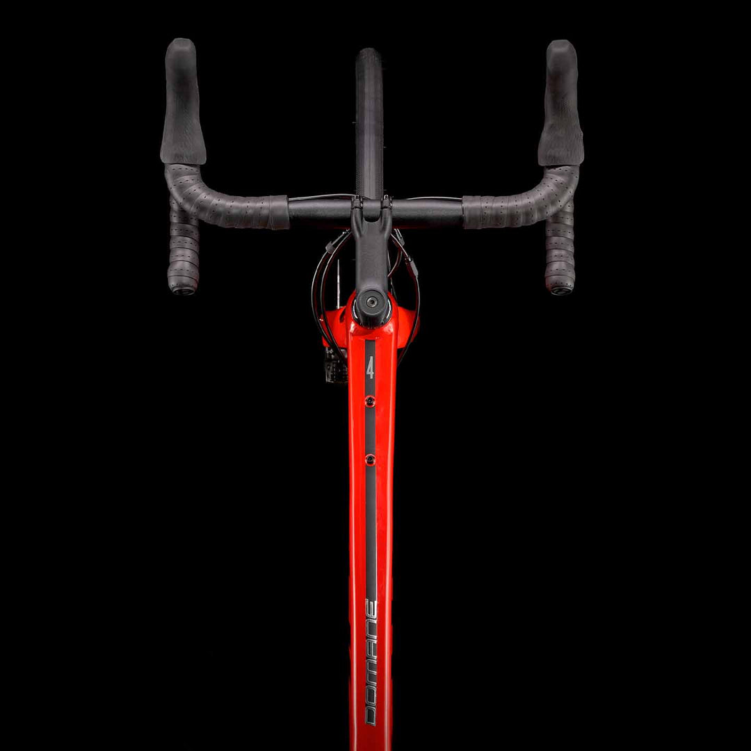 フレームはTREKのOCLV500カーボンで、軽量で高い剛性をもちつつも、カーボンらしい衝撃吸収の良さを発揮。それだけでも快適ですが、ドマーネ独自のISOSPEEDが地面から伝わる振動を吸収し、体へのダメージをさらに抑えます。長距離走っても疲れにくく、ロングライド派の方に最適。快適性だけでなくフレームはエアロ形状を取り入れた事でスピードと安定性を両立。低重心なので、踏み込み字も安定してぐいぐい加速することができます。