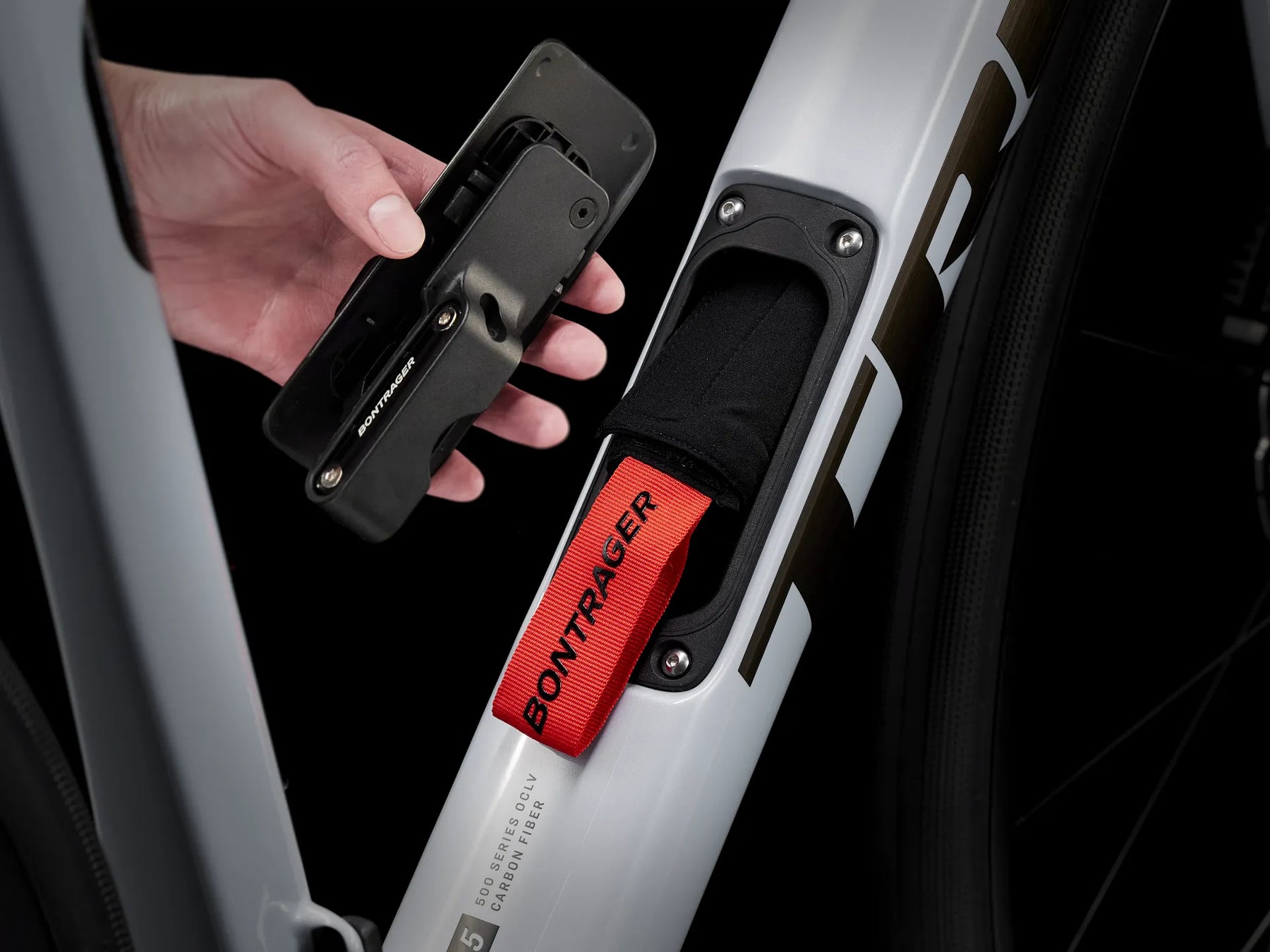 ダウンチューブに設けられたストレージには、携帯用工具やポンプ、タイヤレバーなどを収納できます。ライドの必需品の持ち忘れも防げます。サドルバッグの代わりとして使うもよし、バイクパッキングでの荷物の分散に使うもよし!