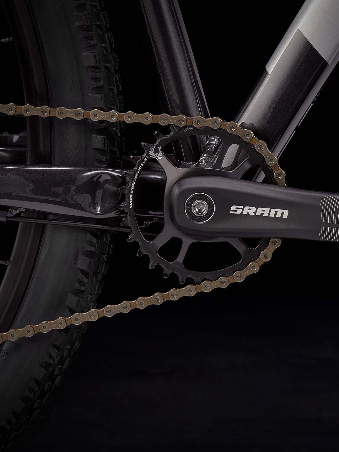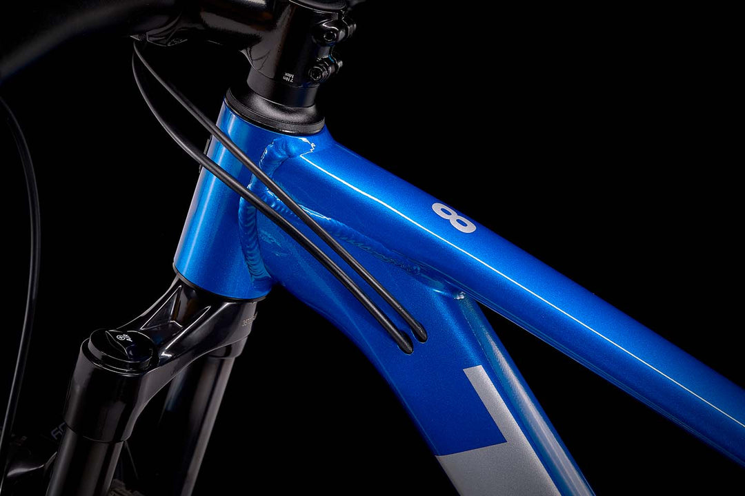 軽量アルミフレームには、最新のトレイルライディング用ジオメトリーを採用し、ケーブル類を保護する内蔵ケーブルルーティングは、バイクをスマートに見せる。アップグレードされたRockshox製サスペンションフォークは荒れたトレイルをスムーズにし、簡単に操作できるSRAM SX Eagleの12速変速、油圧ディスクブレーキの強力な制動力を備える。