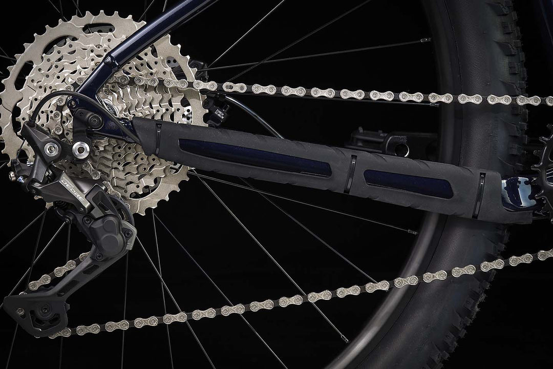 本格トレイルライドバイクと同レベルのフルガード。チェーンのバタつきによるフレームの傷やチェーンの傷み、ばたつき音を抑制してくれる優れもの。