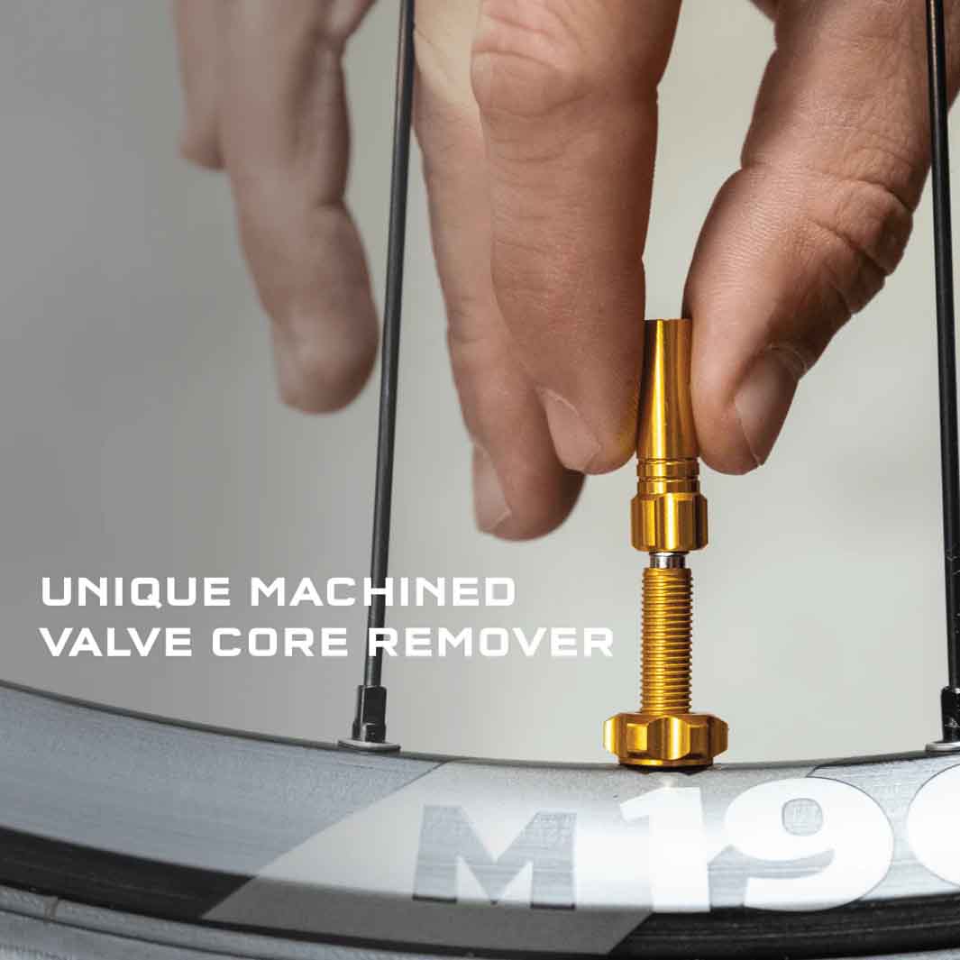 ロード、グラベル、マウンテン、ファット バイク ホイールのチューブレス リムとタイヤと互換性があります。キットには、2 つのプレスタバルブステム、2 つの機械加工アルミニウムキャップ、2 つのナット、2 つの予備バルブコア、独自の機械加工アルミニウムバルブコアリムーバー、およびより多くのリム内部形状との互換性のための 3 つのラバー ベースが付属します。
