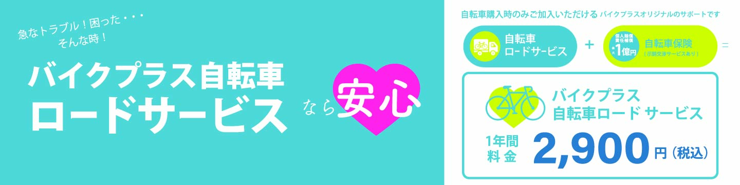 不安をなくし安心して末長く自転車をお楽しみいただくために、私たちが自信を持って提供するサービスです。ご購入時だけでなくご購入後もずっと安心です。こちらのサービスはバイクプラスのローカルストアかオンラインストアでお求めになられた場合にのみ適用されます。