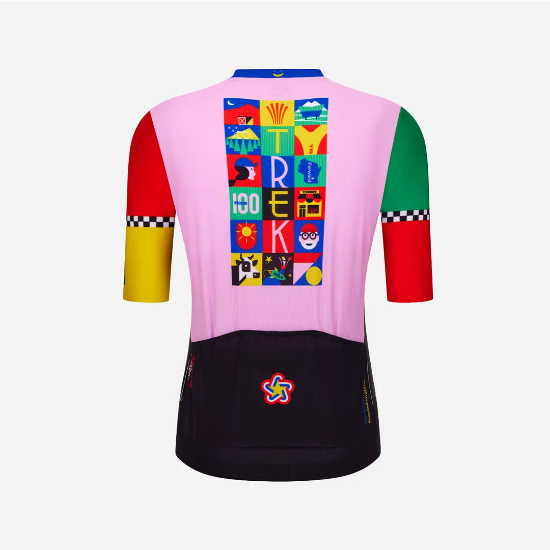 限定サイクリングジャージで、Trekの50年を共に祝福しよう。Trekの歴史を彩る重要な瞬間、アイデア、イノベーションを象徴するアイコンをイラストで描き、ブランドの物語を伝えます。