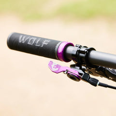 グリップはアルミのカラーでハンドルに固定できるためズレる心配もありません。また、黒色の成形ゴムで作られ、他の Wolf Tooth カラーパーツとコーディネートを楽しめるアルミニウム カラー(ロックリング)が付属しています。Wolf Tooth プラスチックバーエンドプラグ付き。